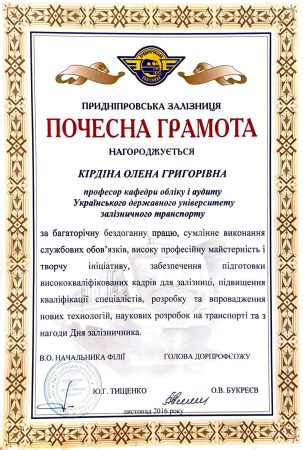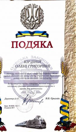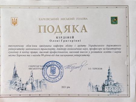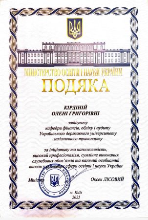 The current department of “Finance, accounting and audit” is a highly professional team that not only ensures the educational process at a high level, but also carries out scientific research. Heads of structural divisions of the Ministry of Infrastructure and of JSC “Ukrainian Railways”, heads of financial and economic services of railways, banks and other financial institutions, as well as leading scientists of higher educational institutions of the city of Kharkiv and Ukraine are actively involved in teaching and research work. Educational disciplines taught at the department are equipped with textbooks, educational and teaching-methodical guides prepared by the department’s teachers.
