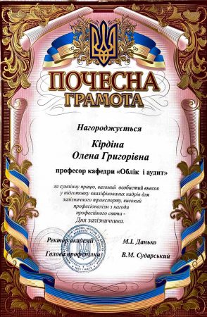 Since 1981, the department, which already had the name of the department of accounting, began to train specialists on a full-time basis. The first graduation of specialists took place in 1985. From the first years of the department’s existence, it was headed by Dr. Tech. of Science, Prof., Candidate of Science economy Sciences V. M. Orlov. Later, the department was headed by leading specialists in railway transport accounting: candidate. economy of Science, Assoc. H.K. Krymius, V.G. Andreev, P.F. Semernin, A.P. Bocharnikov, N.V. Chebanova, O.G. Kirdina.