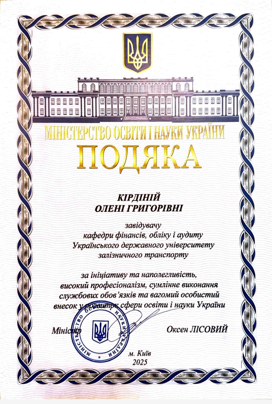 Today, the Department of “Finance, Accounting and Audit” of the Ukrainian State University of Railway Transport is a cohesive creative team that, having absorbed all the assets of previous generations and world financial thought, solves complex macro- and micro-level problems and carries out its own scientific developments.