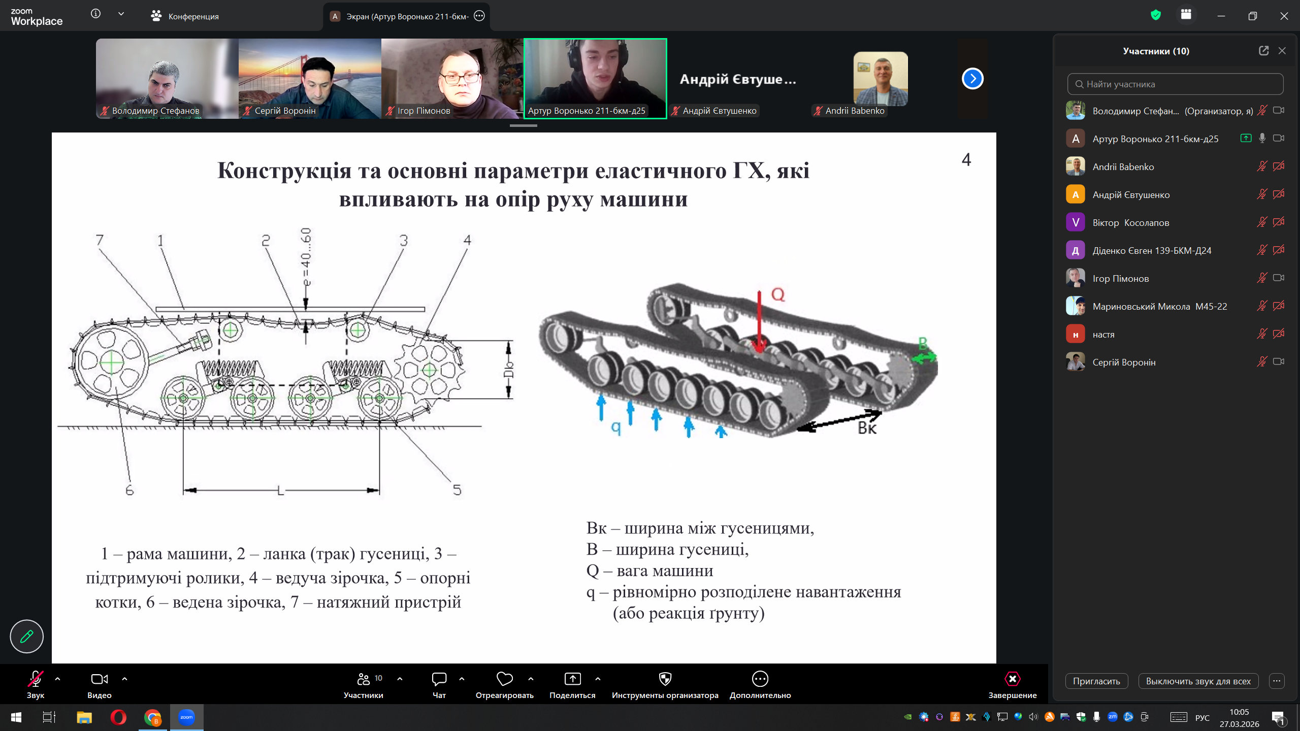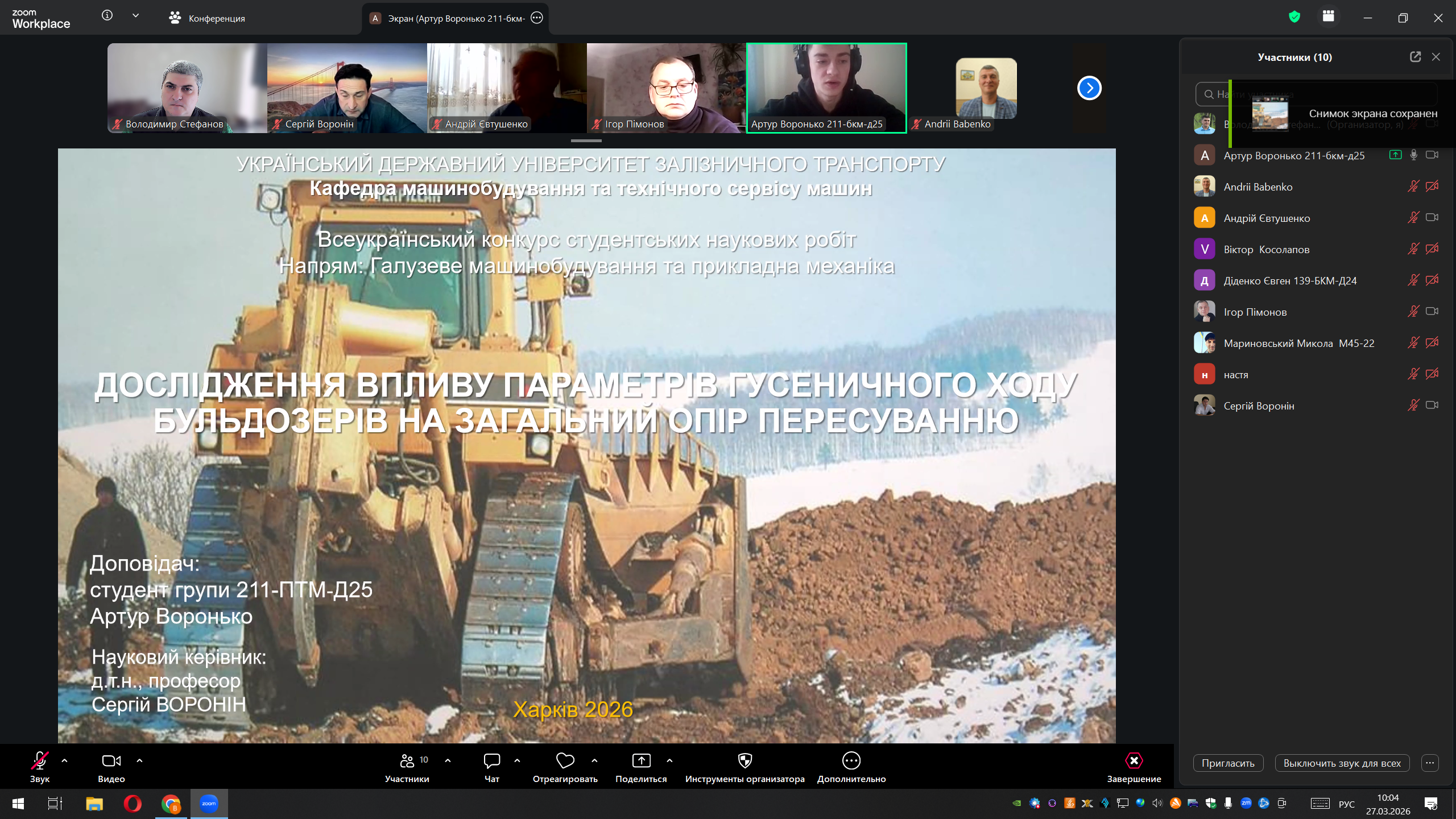І місце – Артур Воронько, студент Українського державного університету залізничного транспорту, за роботу: «Дослідження впливу параметрів гусеничного ходу бульдозерів на загальний опір пересуванню»