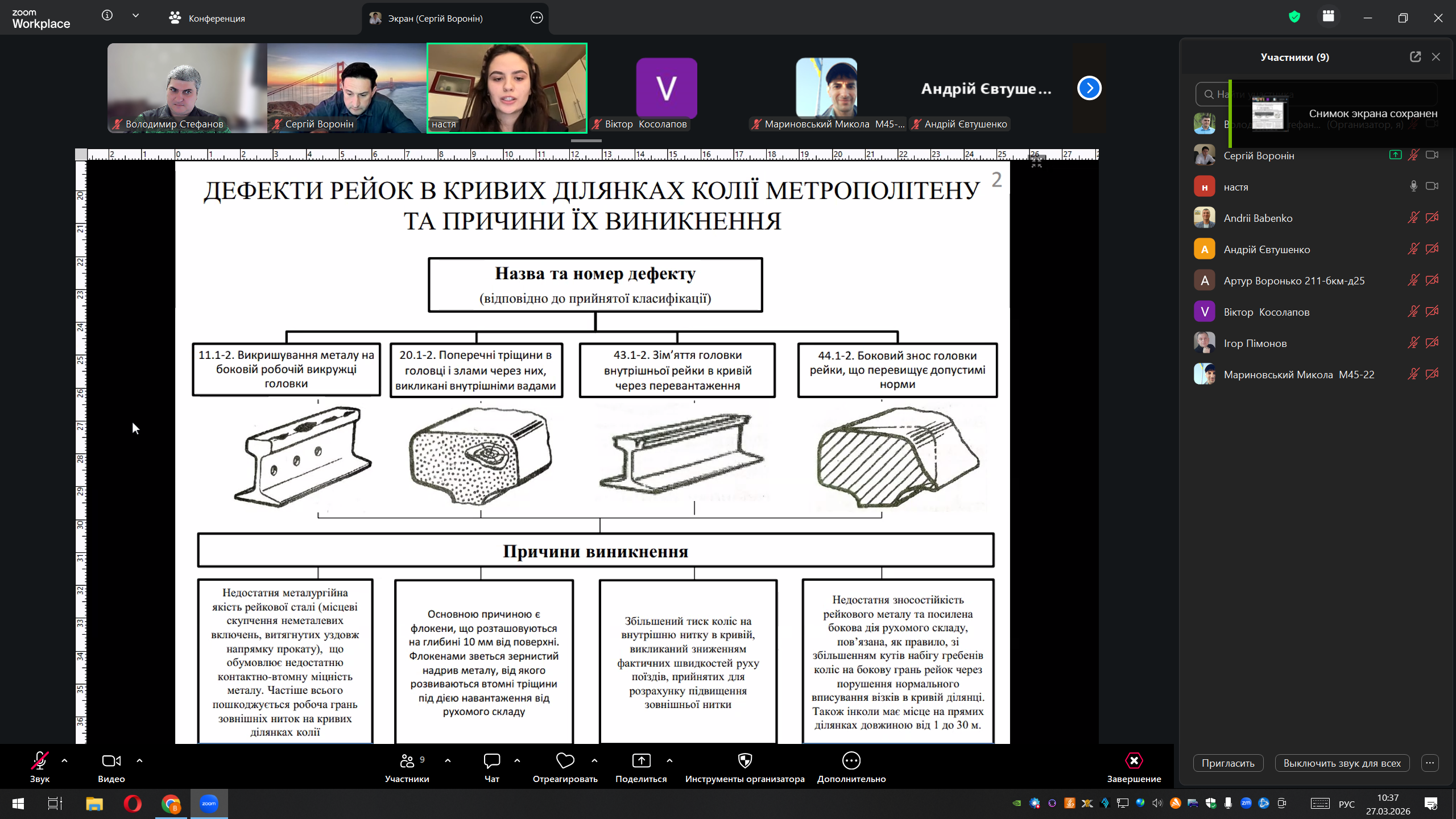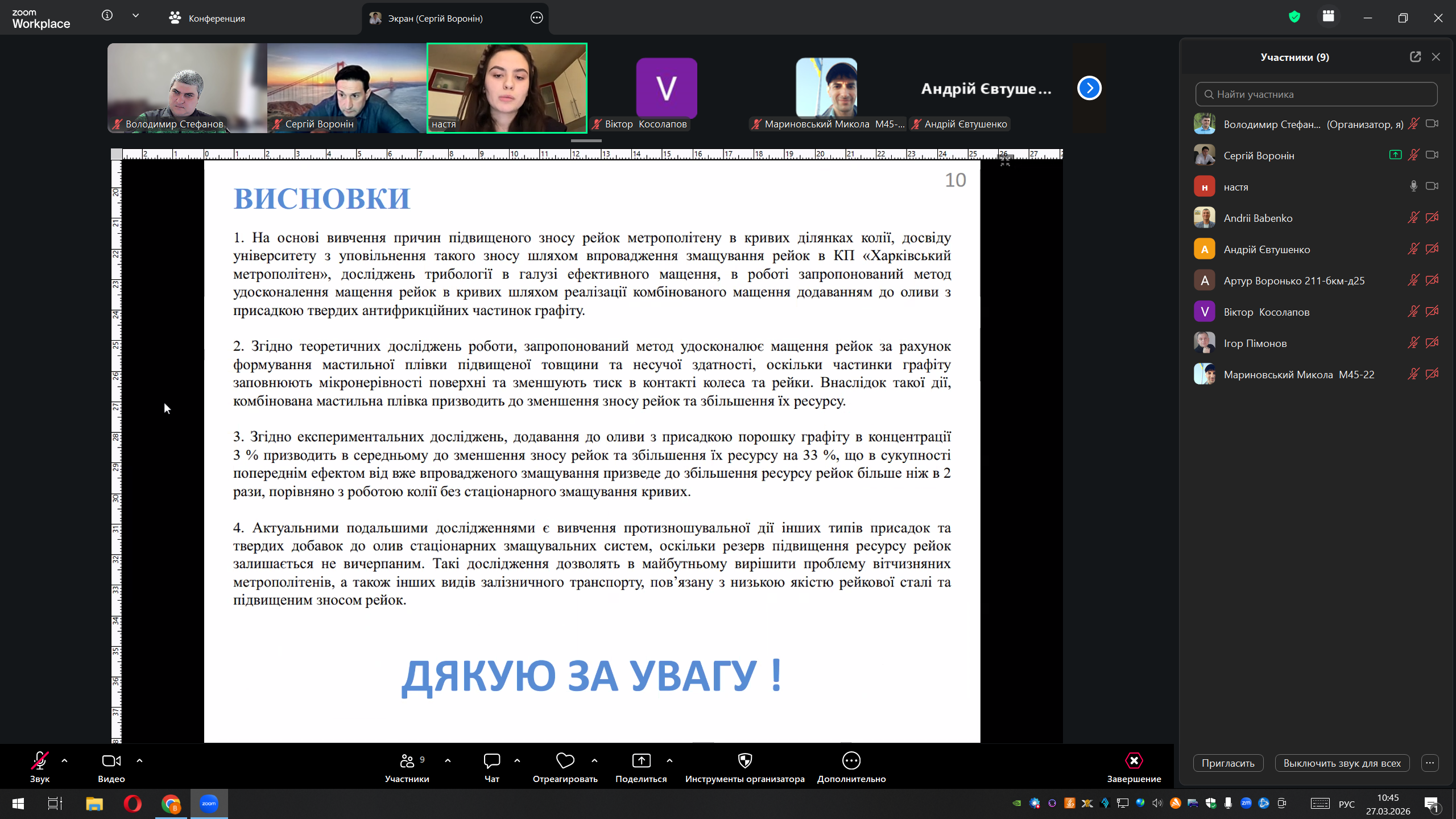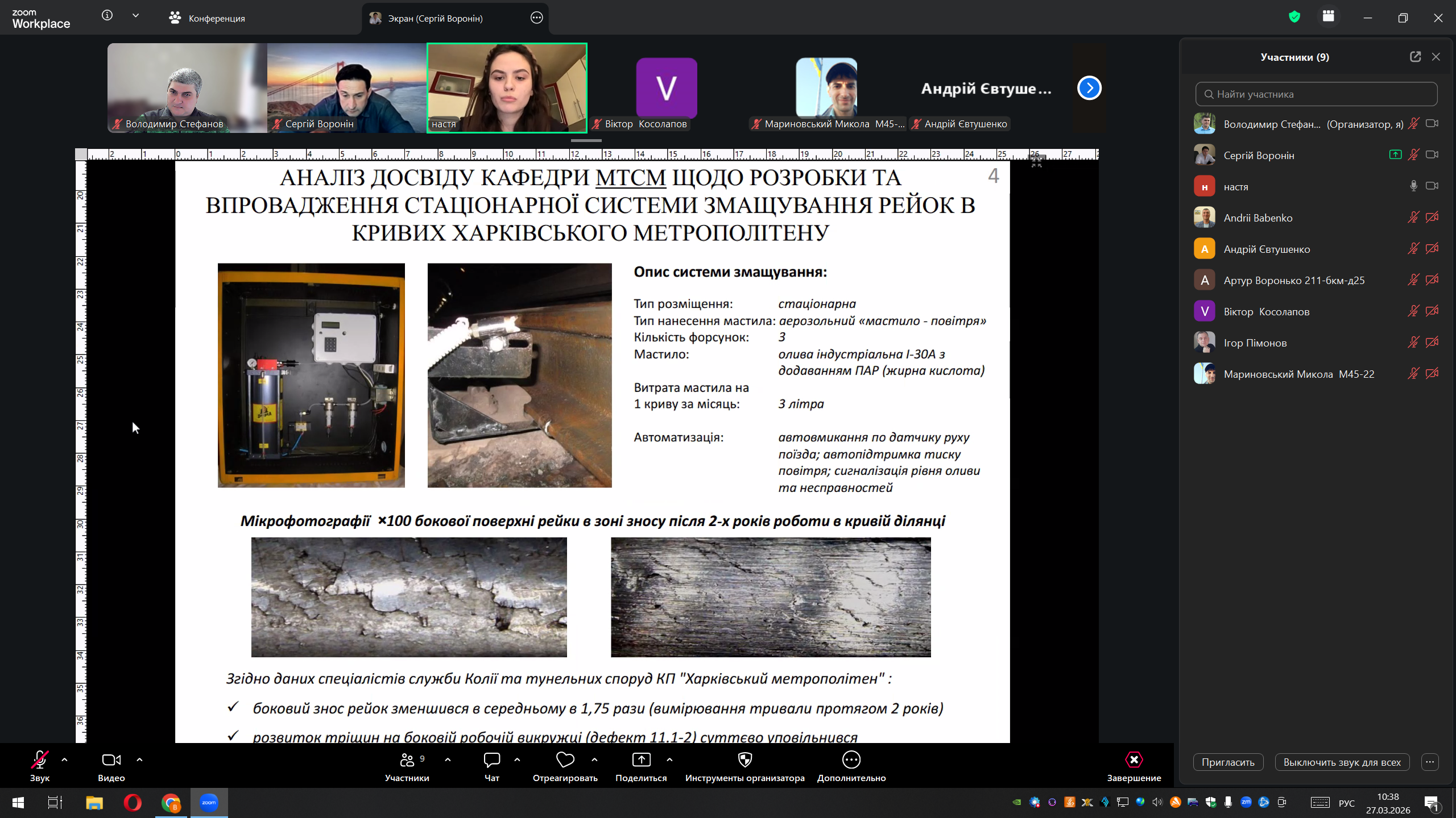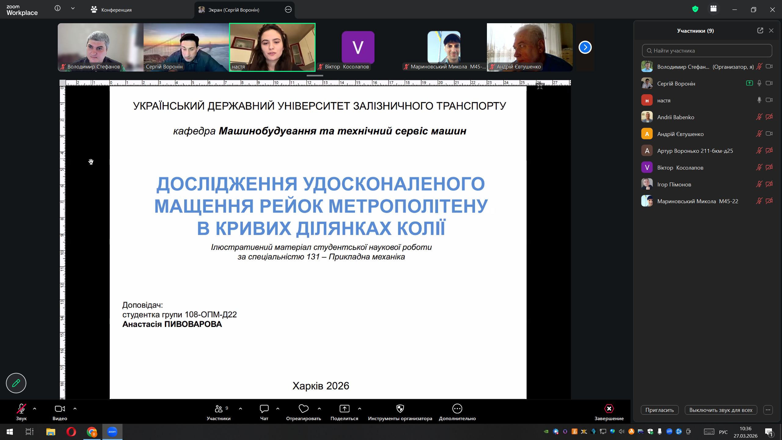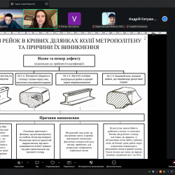 ІІІ місце – Анастасія Пивоварова, студентка Українського державного університету залізничного транспорту, за роботу: «Дослідження удосконаленого мащення рейок метрополітену в кривих ділянках колії»