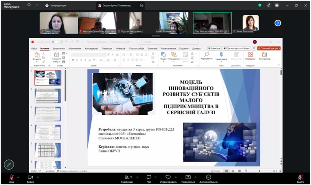 І місце Єлизавета МОСКАЛЕНКО, студентка гр. 108-ЕП-Д23, тема роботи «Модель інноваційного розвитку суб’єктів малого підприємництва в сервісній галузі», науковий керівник – професор кафедри економіки та управління виробничим і комерційним бізнесом, д.е.н., доц. Ганна ОБРУЧ;
