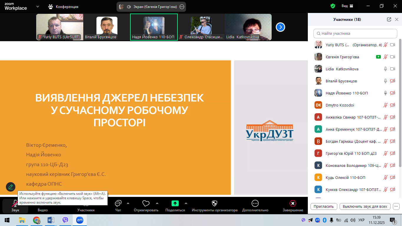 11 грудня 2025 року на кафедрі ” Охорона праці та НС” у дистанційному форматі відбулася 85-а студентська науково-технічна конференція.