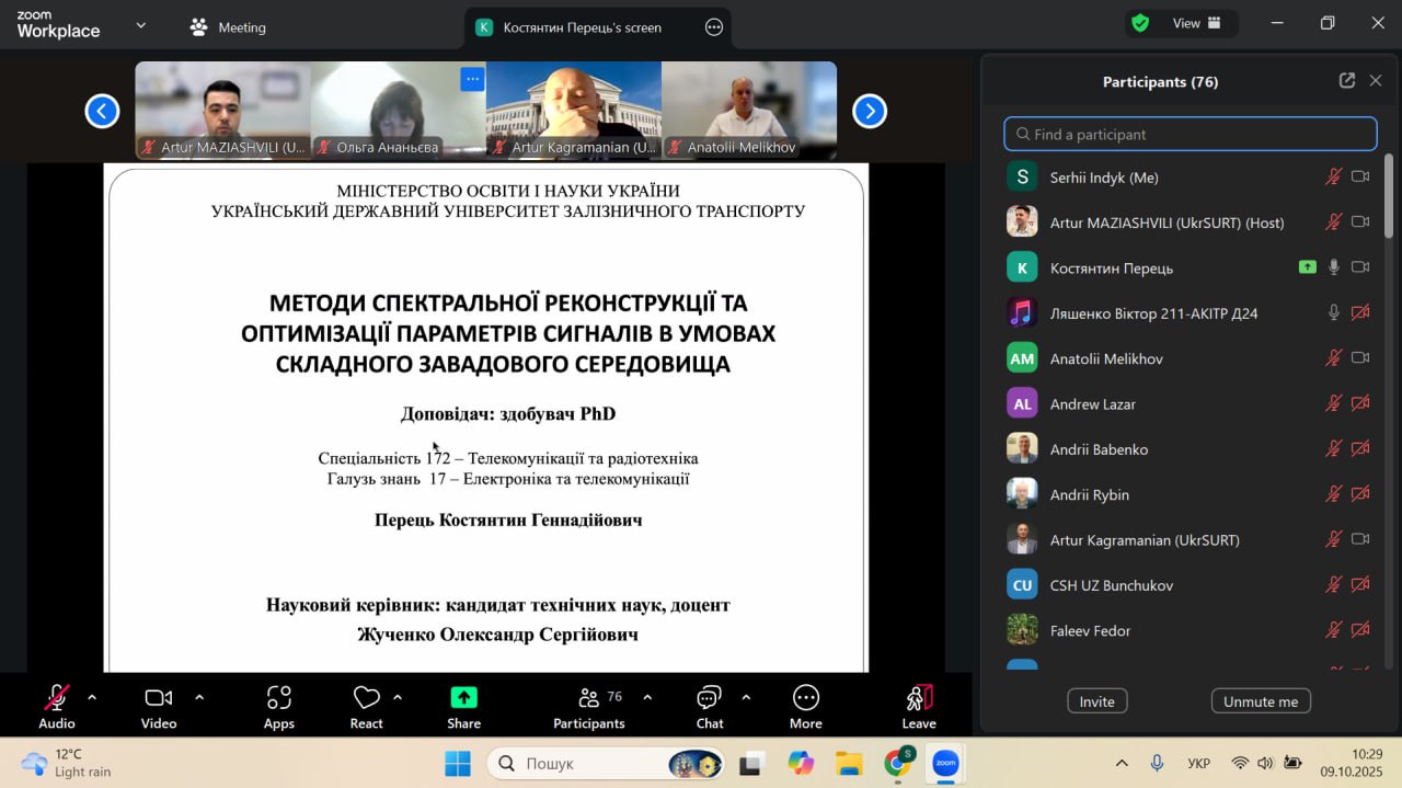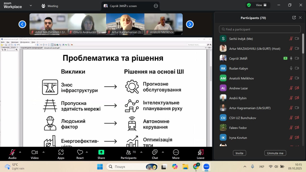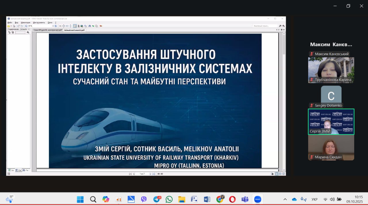 В Українському державному університеті залізничного транспорту відбулась 38-а Міжнародна науково-практична конференція «ІНФОРМАЦІЙНО-КЕРУЮЧІ СИСТЕМИ НА ЗАЛІЗНИЧНОМУ ТРАНСПОРТІ», організатором якої виступила кафедра “Транспортний зв’язок”. Цей захід вже понад тридцять років дозволяє вітчизняним й закордонним науковцям ділитися результатами своїх досліджень. Конференція відбулась протягом 09-10 жовтня 2025 р. в дистанційному форматі, що пов’язано з безпековою ситуацією в регіоні.