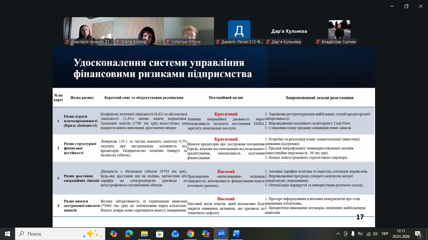 20–22 січня 2026 року на кафедрі «Фінанси, облік і аудит» відбувся захист кваліфікаційних магістерських робіт здобувачів вищої освіти за спеціальностями 072 «Фінанси, банківська справа, страхування та фондовий ринок» та 071 «Облік і оподаткування».