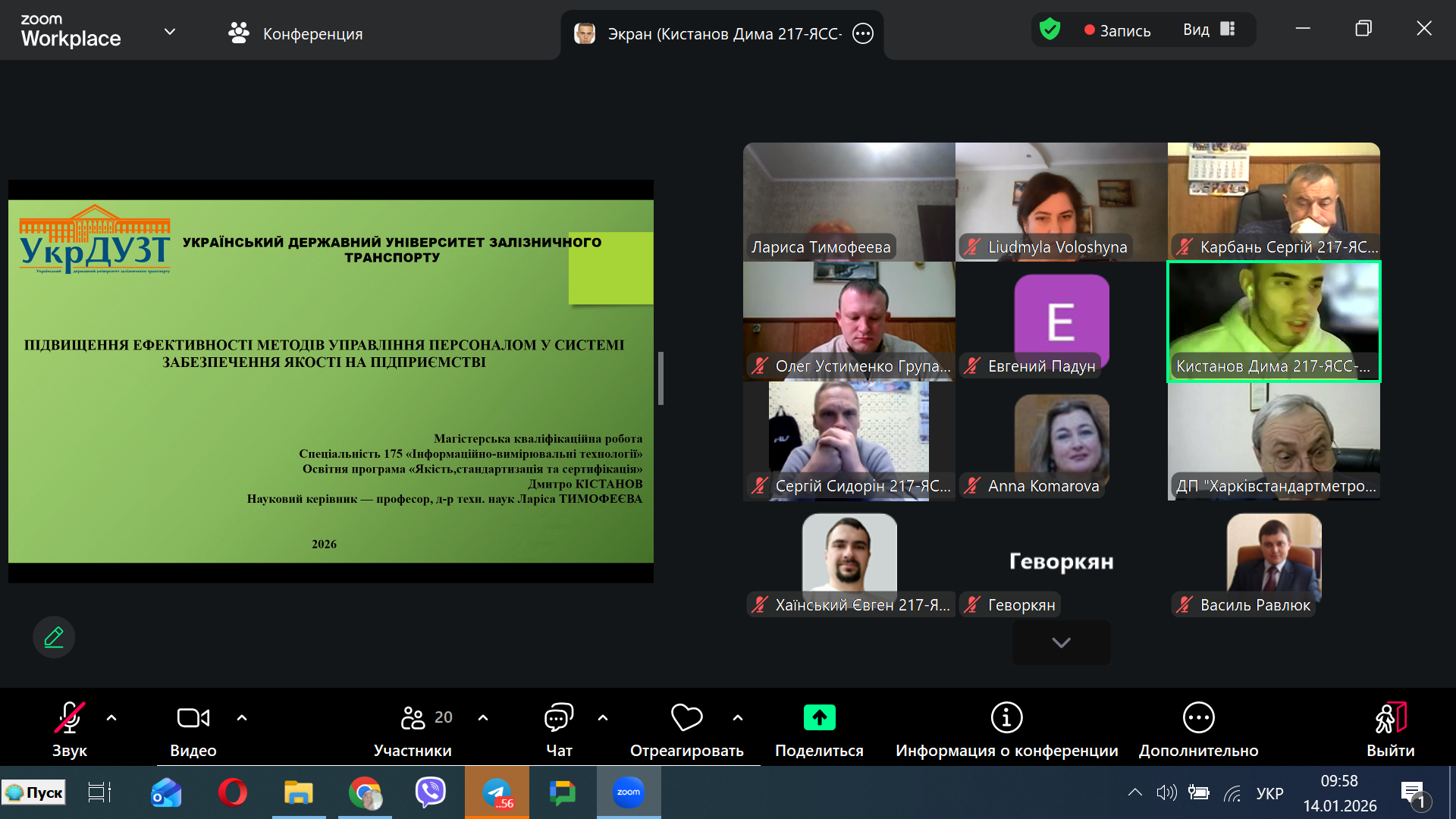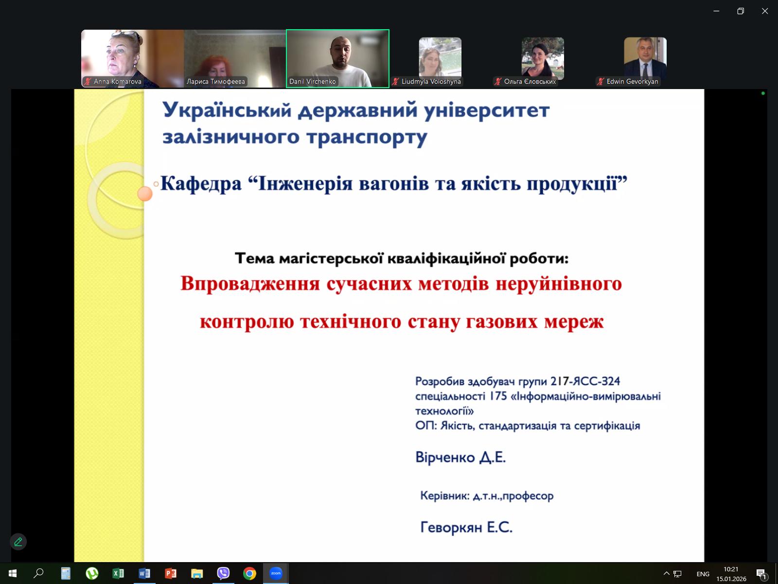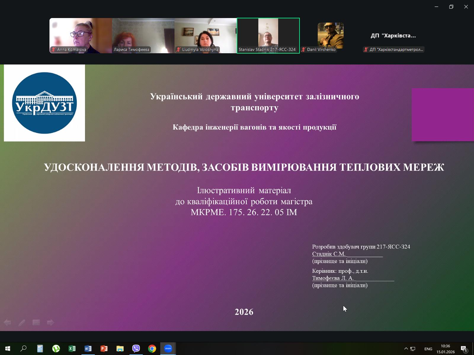 14, 15, 16 січня 2026 року на кафедрі “Інженерія вагонів та якість продукції” відбувся публічний захист магістерських робіт за спеціальністю 175 – Інформаційно-вимірювальні технології освітня програма Якість, стандартизація та сертифікація.