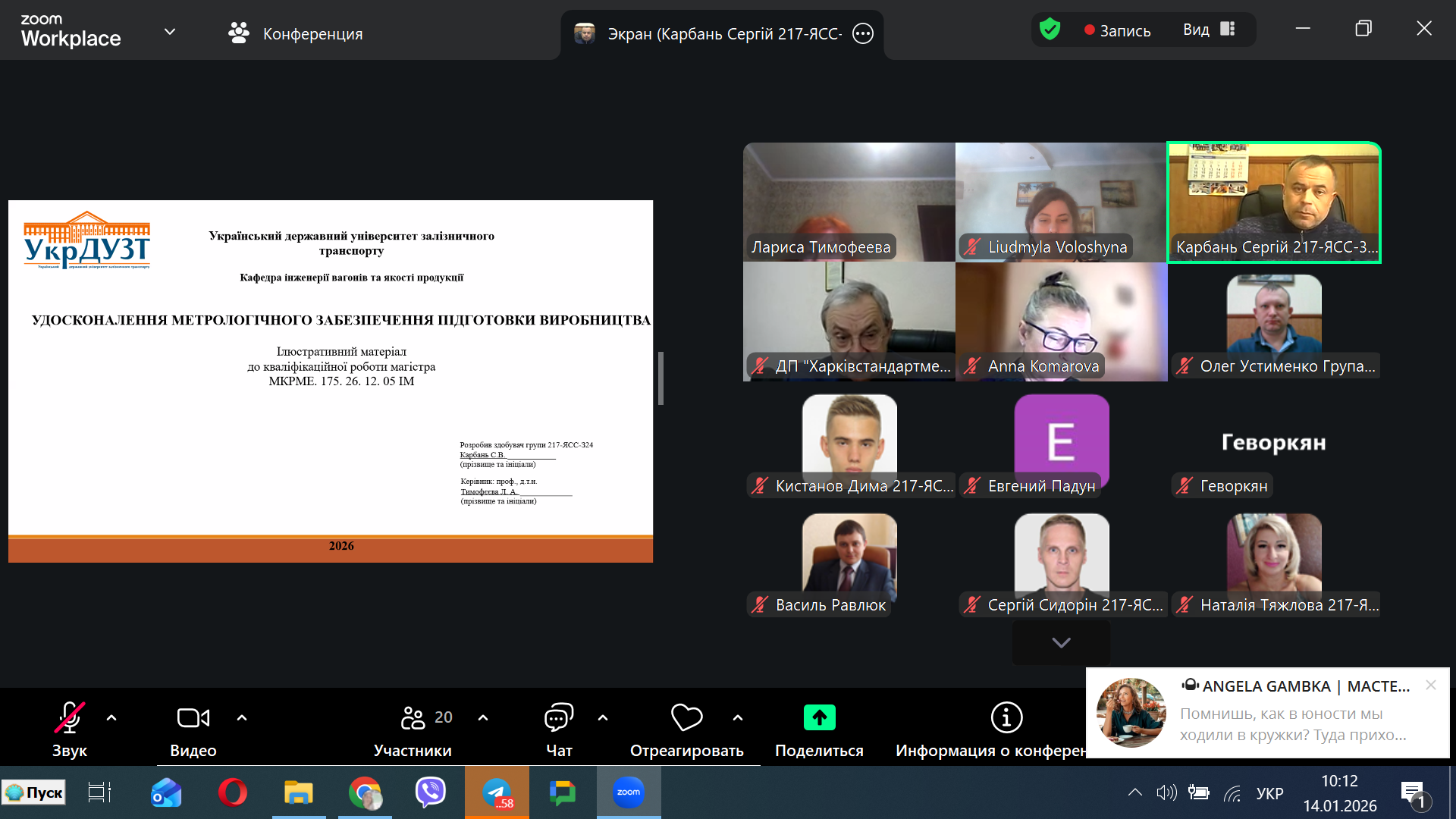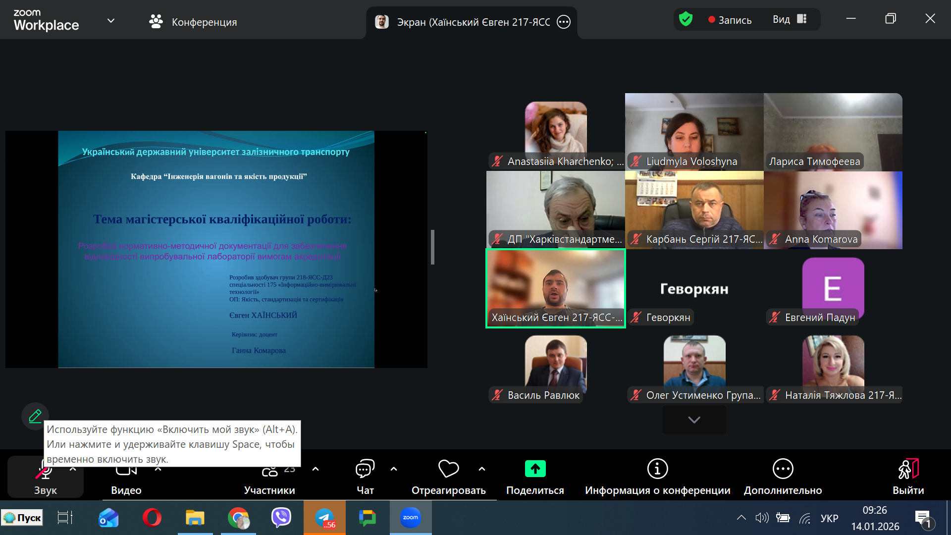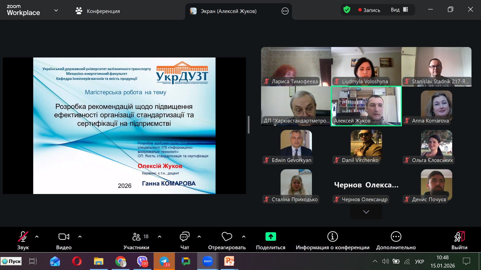 14, 15, 16 січня 2026 року на кафедрі “Інженерія вагонів та якість продукції” відбувся публічний захист магістерських робіт за спеціальністю 175 – Інформаційно-вимірювальні технології освітня програма Якість, стандартизація та сертифікація.