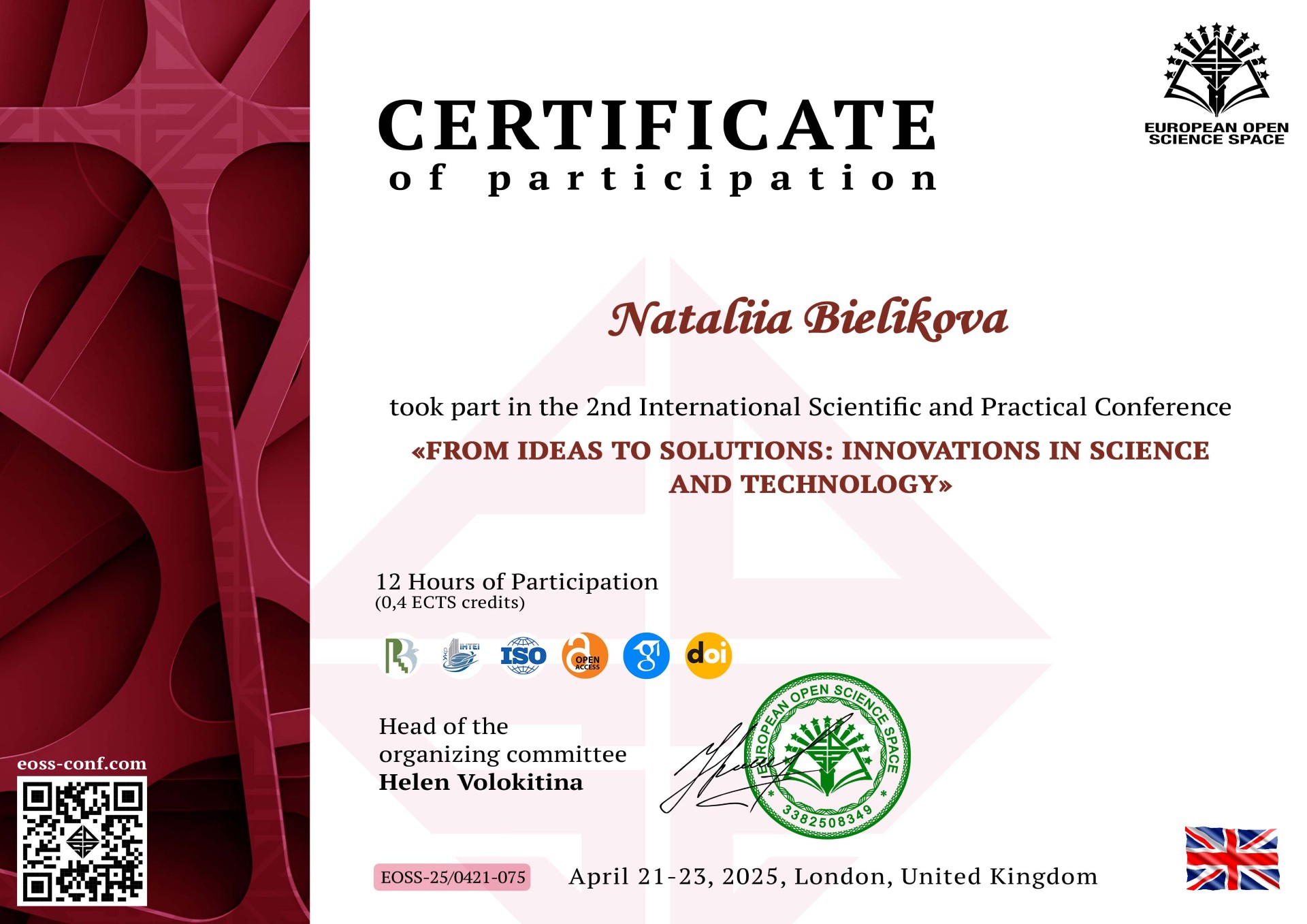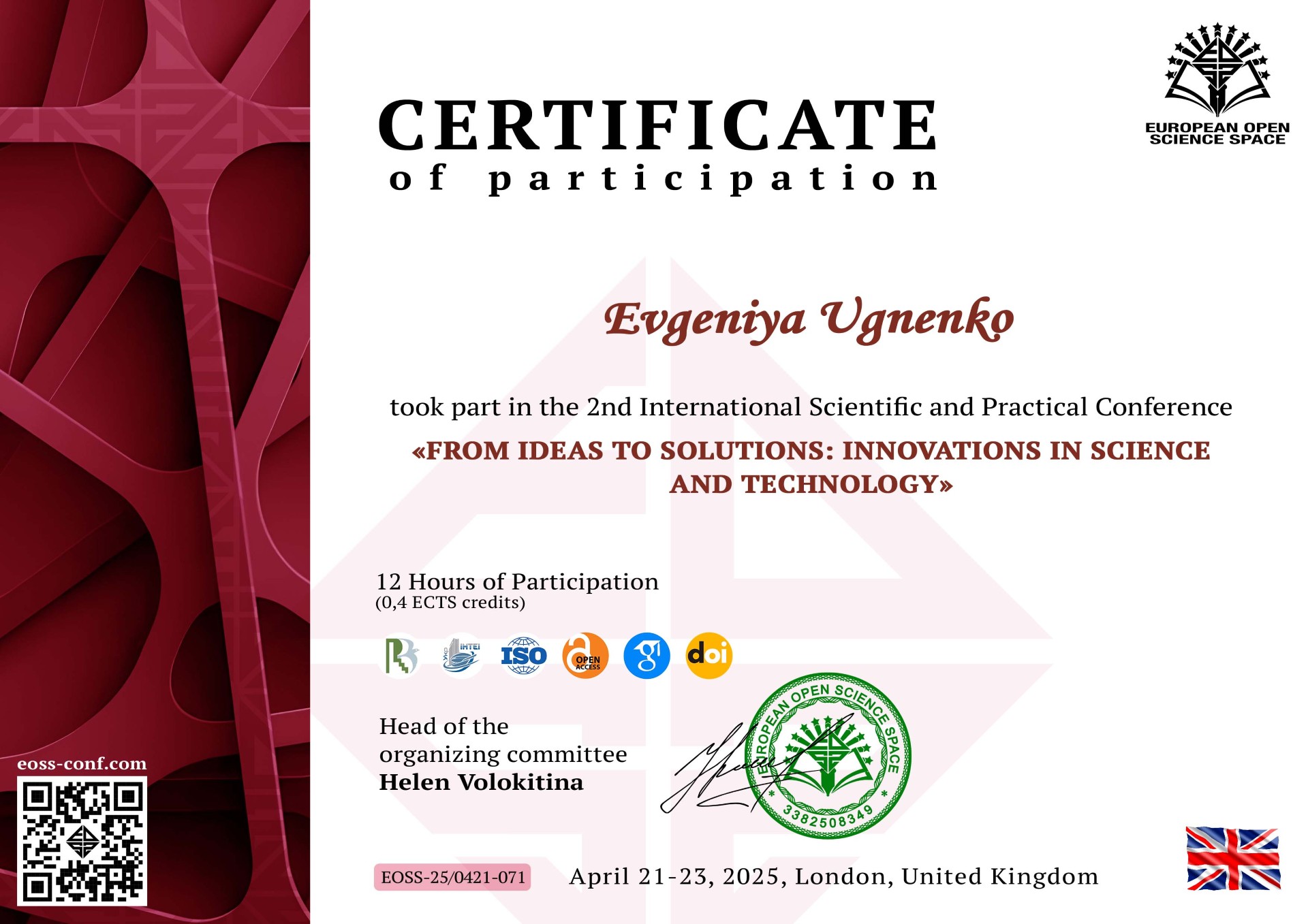 – IІ International Scientific and Practical Conference (April 21-23, 2025, London, United Kingdom);