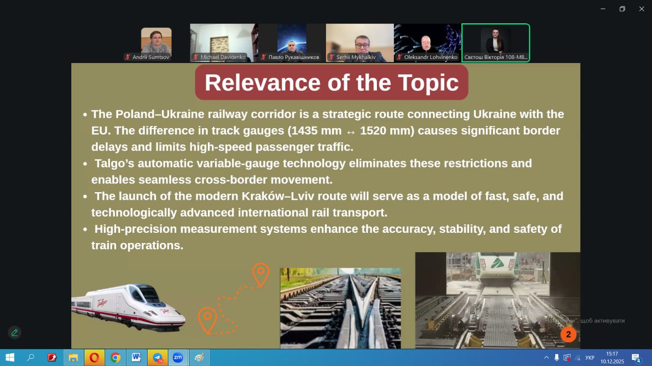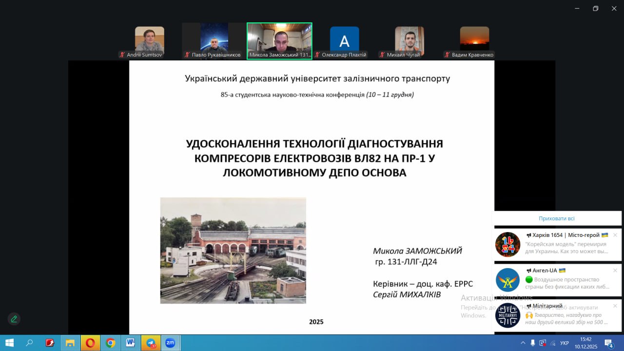10 грудня 2025 року на механіко-енергетичному факультеті у дистанційному форматі відбулося пленарне засідання 85-ї студентської науково-технічної конференції, яке зібрало понад 40 учасників. Зі вступними привітальними словами виступили в. о. завідувача науково-дослідної частини Сергій МИХАЛКІВ, заступник декана механіко-енергетичного факультету Павло РУКАВІШНИКОВ. Науковий комітет конференції у складі професорів Володимир ПУЗИР, Василь РАВЛЮК, Михайло БАБАЄВ, Володимир МОРОЗ і доценти Павло ХАРЛАМОВ, Олександр ЛОГВІНЕНКО. Під час засідання були заслухані доповіді здобувачів освіти: Improving railway connectivity between the eu and ukraine through the operation