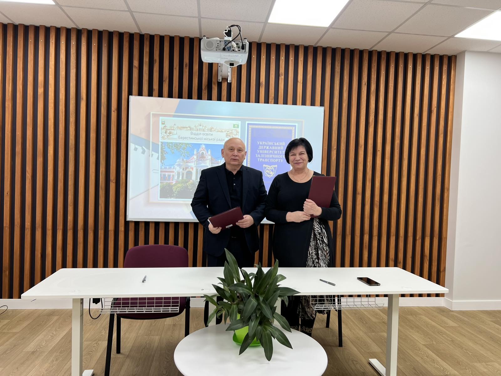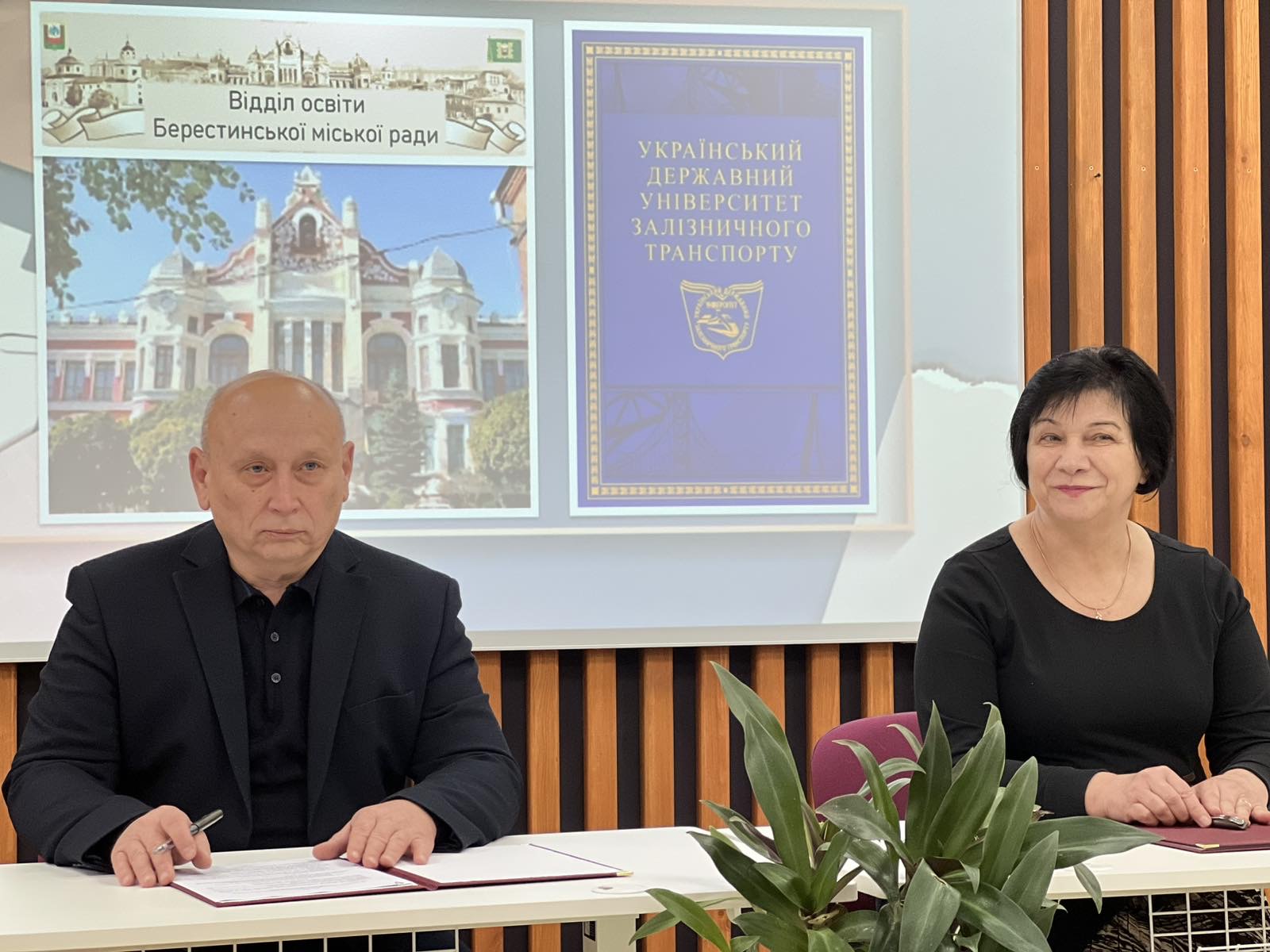 Документи підписали Панченко Сергій Володимирович, д.т.н., проф, в.о. ректора Українського державного університету залізничного транспорту та Турова Антоніна Іванівна, начальник відділу освіти Берестинської міської ради, у присутності представників УкрДУЗТ і установ освіти Берестинської міської ради.