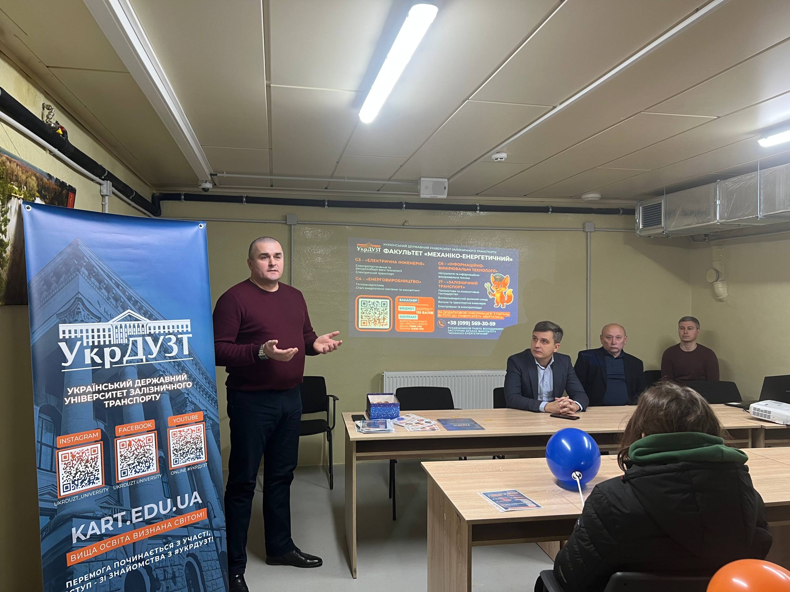 Цього ж дня за підтримки міського голови Голоднікова Павла Вікторовича представники УкрДУЗТ провели профорієнтаційний захід для учнів старших класів Зміївської громади, під час якого майбутніх абітурієнтів ознайомили з умовами вступу, освітніми програмами та спеціальностями університету.